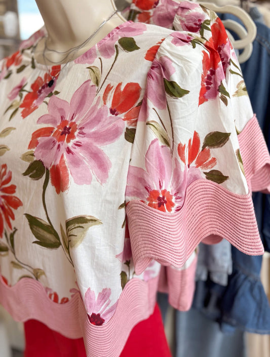 Floral with Pink Scallop Blouse