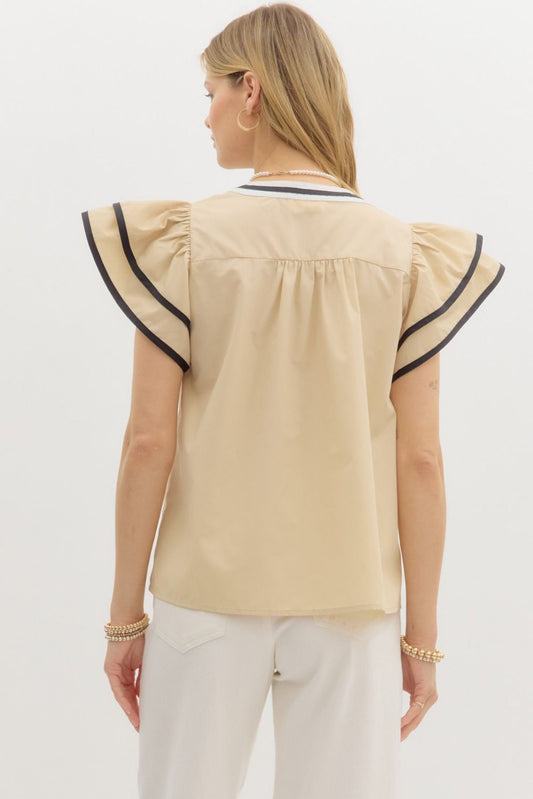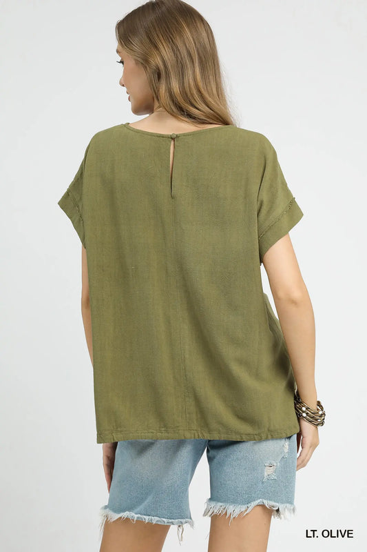 Linen Blend Half Sleeve Top