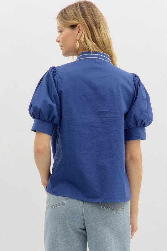 Puff Sleeve Embroidered Top blue